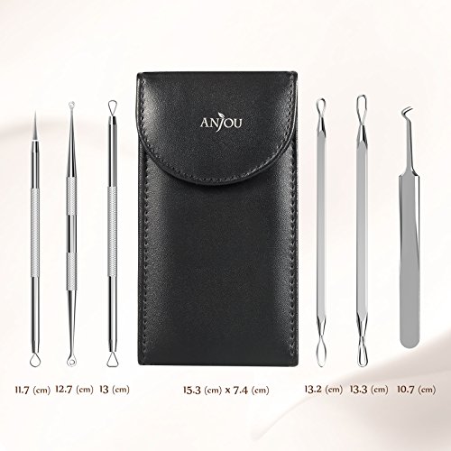 Home » Beauty » Make-up » Make-up Zubehör » Anjou 6 Stücke Mitesserentferner Komedonenquetscher Set aus risikofreiem Edelstahl, Verschiedene Werkzeuge zur Professionellen Behandlung von Gesichtsunreinheiten wie Akne, Pickel